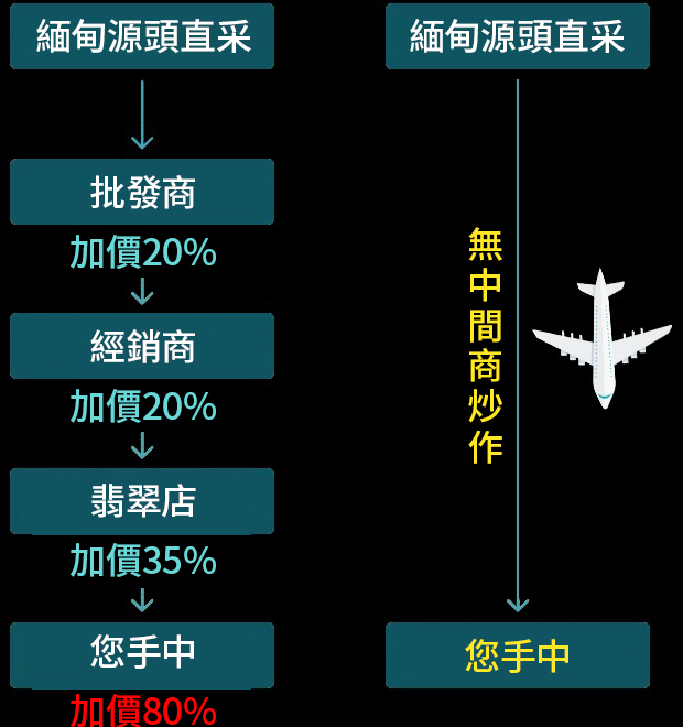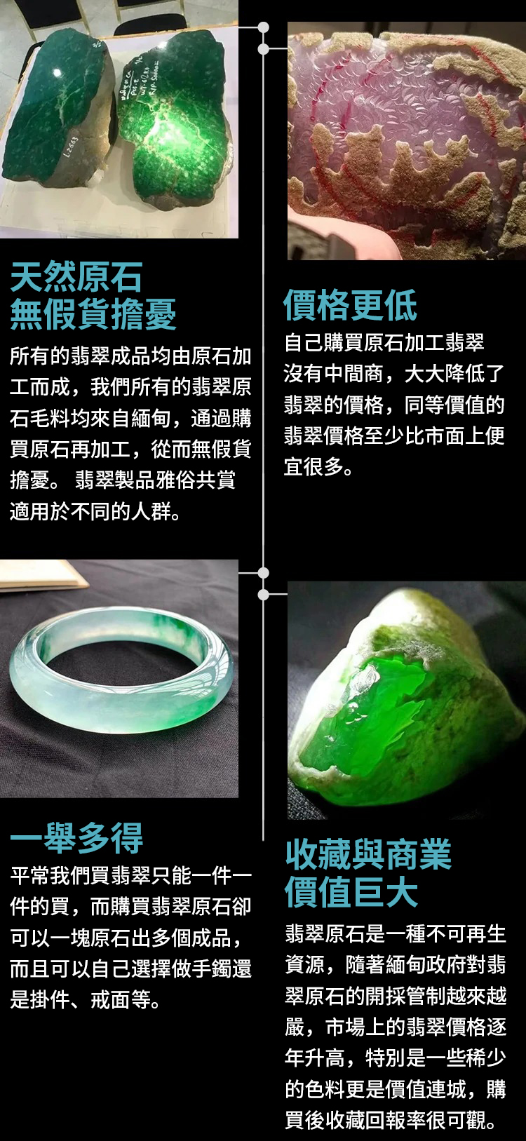 我們的貨源都是從緬甸商手上直接購買的原料,自己家也有設計、經驗師傅,從而成功做到沒有中間商賺差價。
