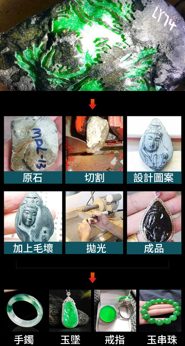 我們除了銷售原石以外,還可以根據您的意願設計成不同的樣式,專業的大師級雕刻師保證每一塊原石都可以達到最佳的利用,打造更多的精品。